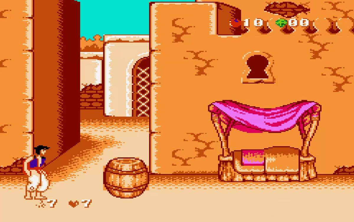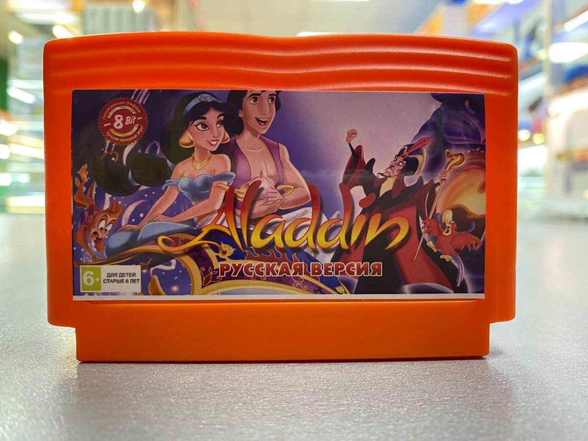 Aladdin – игра для Dendy по мотивам одноименного мультфильма Аладдин.Сюжет игры основан на сюжете оригинального мультфильма. Простой уличный вор по имени Аладдин нашел старую лампу, потерев которую освободил Джинна. Джинн обязан выполнить 3 желания хозяина лампы. Влюблённый в принцессу Жасмин вор Аладдин просит сделать его принцем, чтобы принцесса обратила на него внимание. Но в королевстве Аграба был ещё один желающий получить волшебную лампу – коварный визирь Джафар. С помощью лампы Джафар хочет стать новым султаном Аграбы.