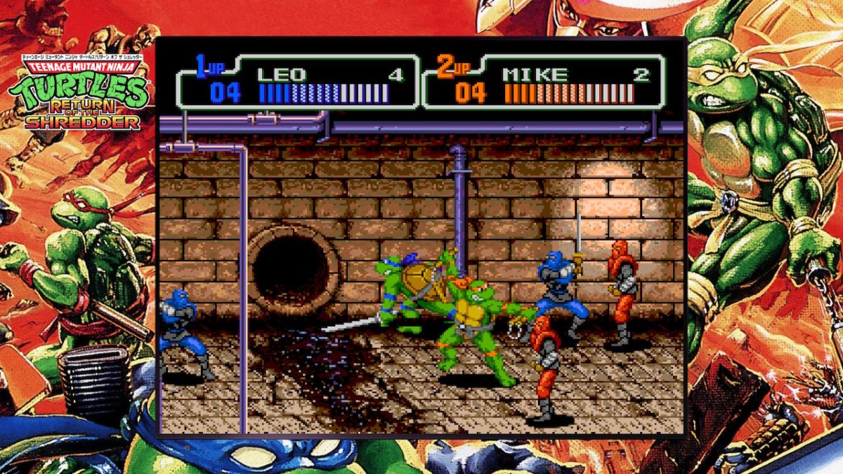 Teenage Mutant Ninja Turtles: The Cowabunga Collection – коллекция олдскульных игр-аркад и приключений о Черепашках-Ниндзя. Большая часть проектов в данном сборнике имеют пиксельную графику, вид сбоку, а игровой процесс в стиле платформера-файтинга. Игрок может последовательным образом проходить главы, узнавая больше об истории и противостоянии мутировавших черепашек со злом.